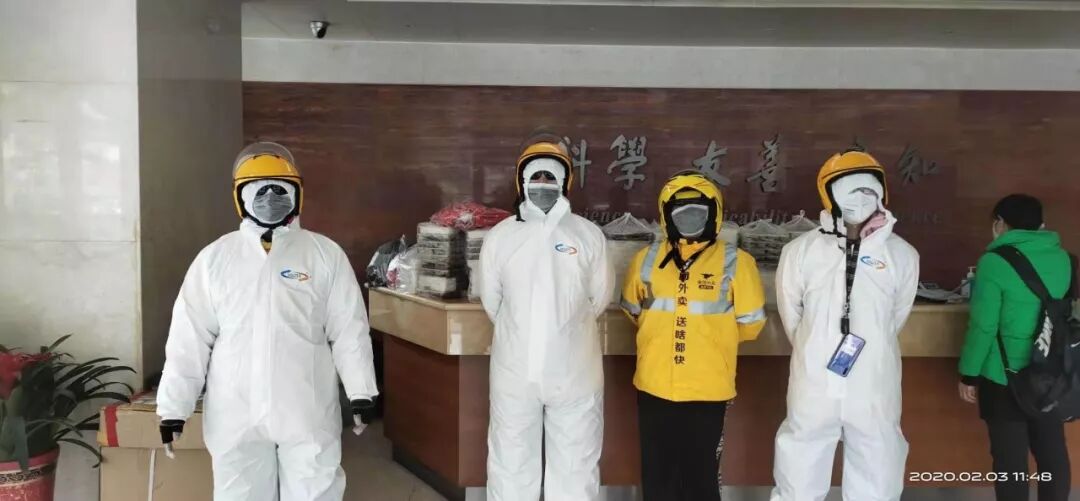 2月3日,刘俊平带着三名骑手,将170份餐送到了此次疫情的重点医疗机构——武汉大学人民医院(湖北省人民医院),将热腾腾的饭菜送到了医护人员的手中。