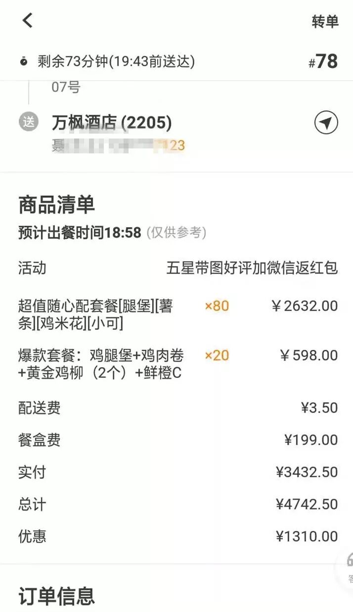 刘俊平接到一单,前往被隔离酒店为医护人员送餐
