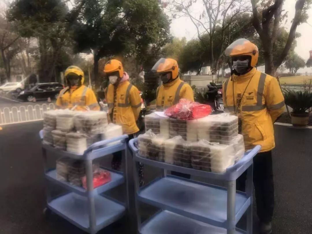 1 月 27 日,美团启动武汉医护紧急专供餐行动,联合商家为医护人员免费提供餐品,面向内部招募志愿司机。一些爱心商户也纷纷加入,刘俊平就带领几名骑手骑着电动车,义务为武汉大学人民医院送餐。