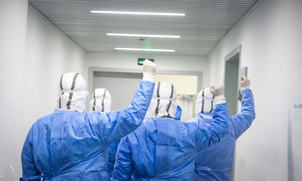 此时,很多医务人员已经聚集在一起相互检查着防护服的穿戴、查看患者的医嘱并列队在楼下等候。