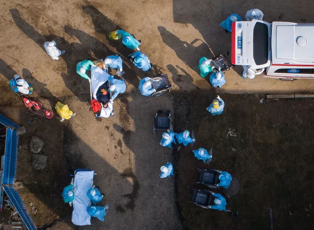 2月4日,医务人员将新型冠状病毒感染的肺炎确诊患者送入武汉火神山医院病房。