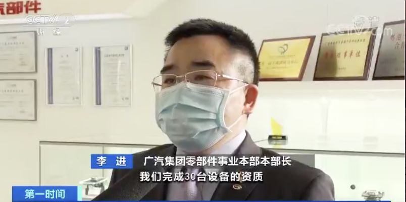 广汽集团零部件事业本部本部长李进:我们预计本月底完成30台设备的资质,广汽将严格依照相应的技术标准生产口罩。