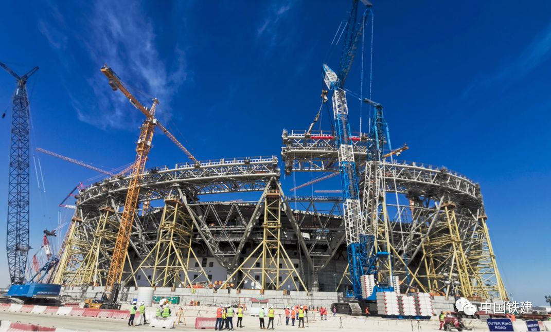 中国铁建所属铁建国际携手中小企业精诚合作共克时艰,带动产业链发展。中国铁建卢赛尔体育场项目是中国企业首次以设计施工总承包身份参建的世界足联最高标准专业足球场,是目前中国企业在海外建造的规模最大、容纳人数最多的专业体育场馆。近日,在中国铁建的协调、帮助下,精工钢构集团复工后加快该项目建设进度,目前已逐步恢复正常产能。在卡塔尔卢赛尔体育场压环吊装期间,派出了20多名管理、大型构件吊装、安装技术专家增援该项目,陆续从国内派驻工人千余人次。