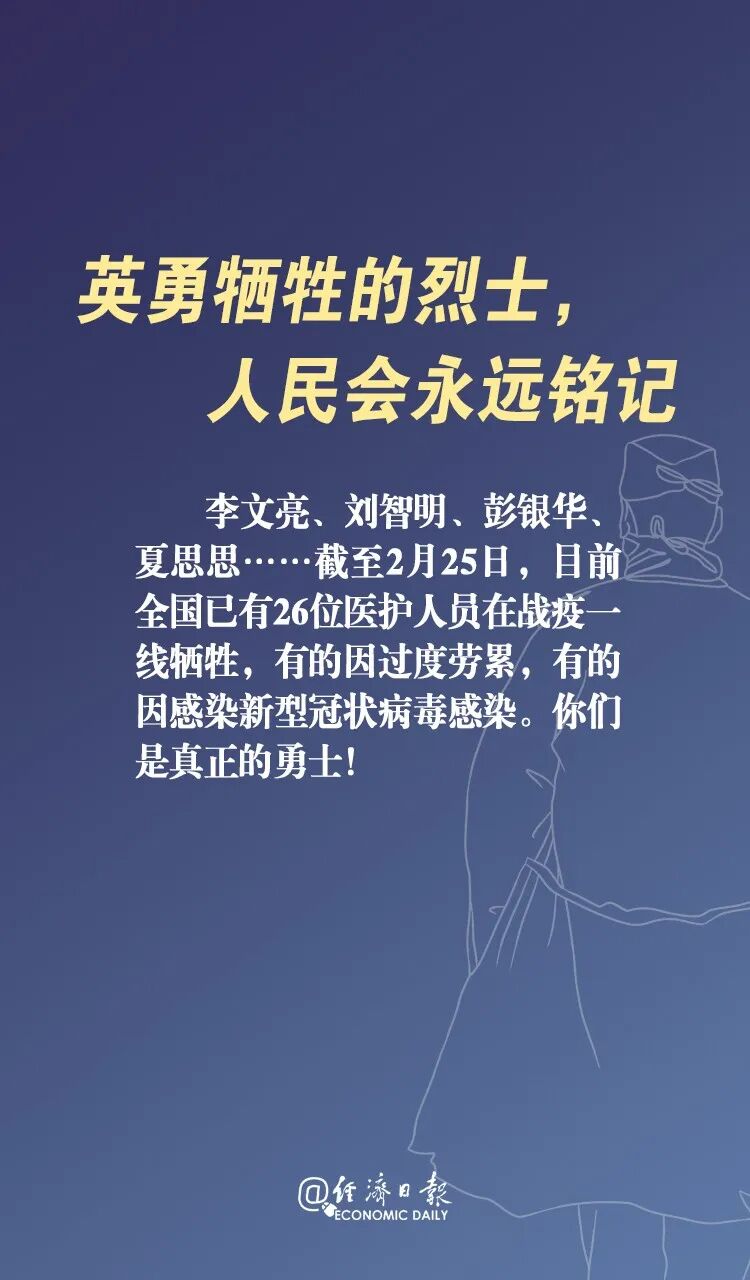 面对这场突如其来的新冠肺炎疫情,医务工作者白衣执甲、逆行出征,他们义无反顾投身防控救治工作,日夜奋战,舍生忘死,以奉献护卫安康,以生命践行使命。或因使命担当,或因情义大爱,其中的每一份坚守都让人敬佩。