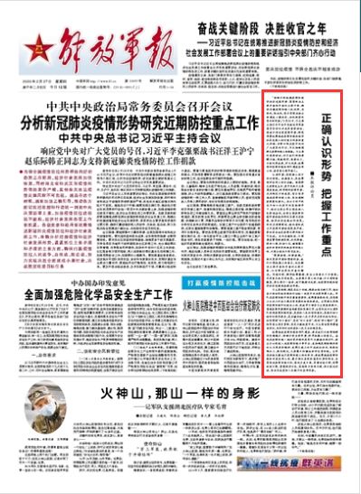 “准确分析把握疫情和经济社会发展形势,紧紧抓住主要矛盾和矛盾的主要方面,确保打赢疫情防控人民战争、总体战、阻击战,努力实现决胜全面建成小康社会、决战脱贫攻坚目标任务。”2月26日,习主席主持召开中共中央政治局常务委员会会议并发表重要讲话,深刻分析当前疫情形势,研究部署统筹推进疫情防控和经济社会发展工作的重点任务和重大举措,并带头响应党中央对广大党员的号召,为支持新冠肺炎疫情防控工作捐款。习主席的重要讲话,对于我们保持清醒头脑,再接再厉、乘势而上,不断巩固成果、扩大战果,统筹做好疫情防控和部队建设各项工作,具有重大指导意义。