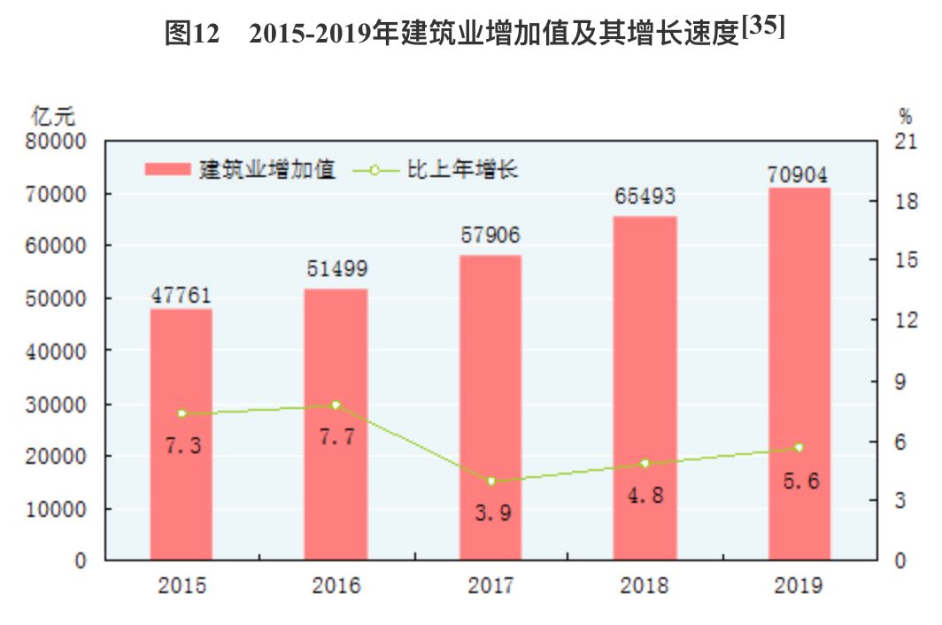全年全社会建筑业增加值70904亿元,比上年增长5.6%。全国具有资质等级的总承包和专业承包建筑业企业利润8381亿元,比上年增长5.1%,其中国有控股企业2585亿元,增长14.5%。