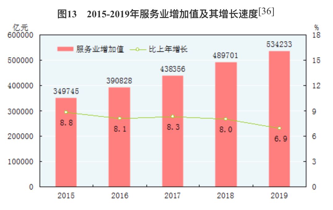 [21]战略性新兴服务业包括新一代信息技术产业,高端装备制造产业,新材料产业,生物产业,新能源汽车产业,新能源产业,节能环保产业和数字创意产业等八大产业中的服务业相关行业,以及新技术与创新创业等相关服务业。2019年战略性新兴服务业企业营业收入增速按可比口径计算。