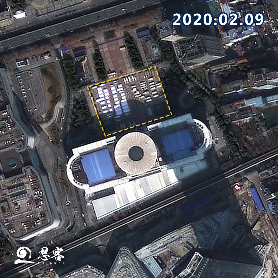 ▲图为武汉国际会展中心、武汉协和医院疫情前后对比图。