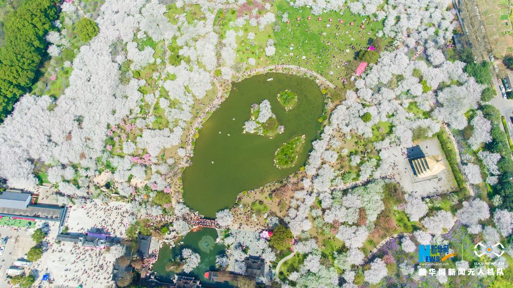 ▲图为2019年3月东湖樱花园航拍图。新华网 李晓笛摄