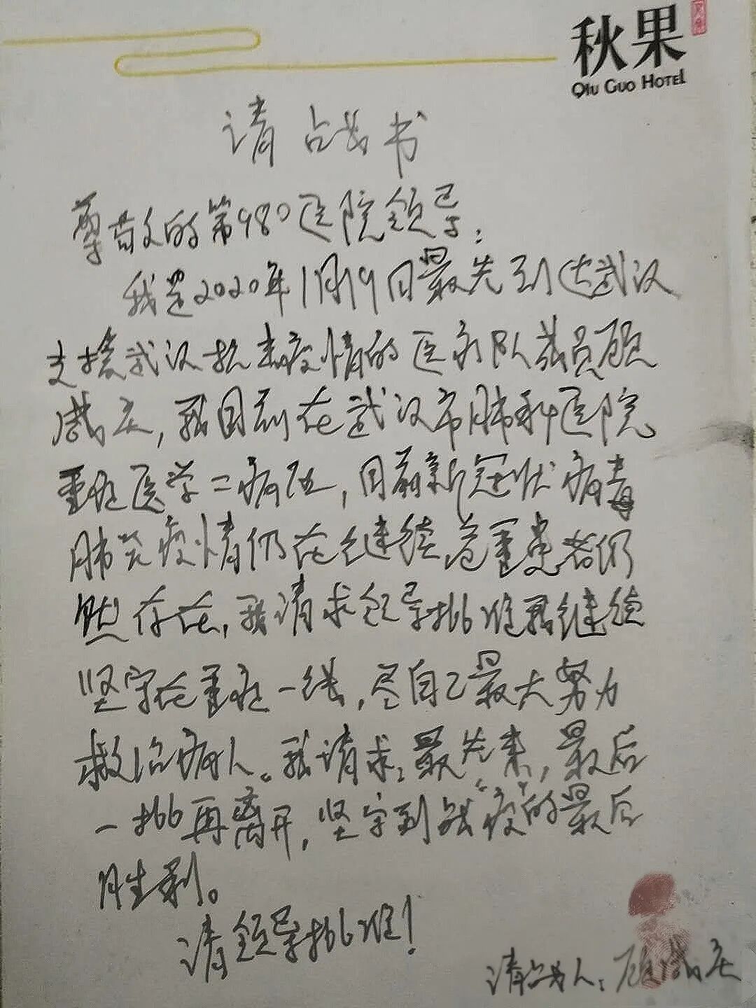 出发前未来得及递交请战书的他