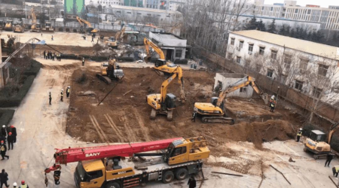 1月26日晚,近百名项目管理者火速赴郑,数十台大型土方设备连夜进场,构筑物拆除工作开始进行