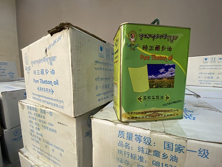 游青山身后的红色大货车里堆放着267箱食用油,重量约5吨。