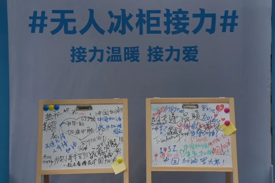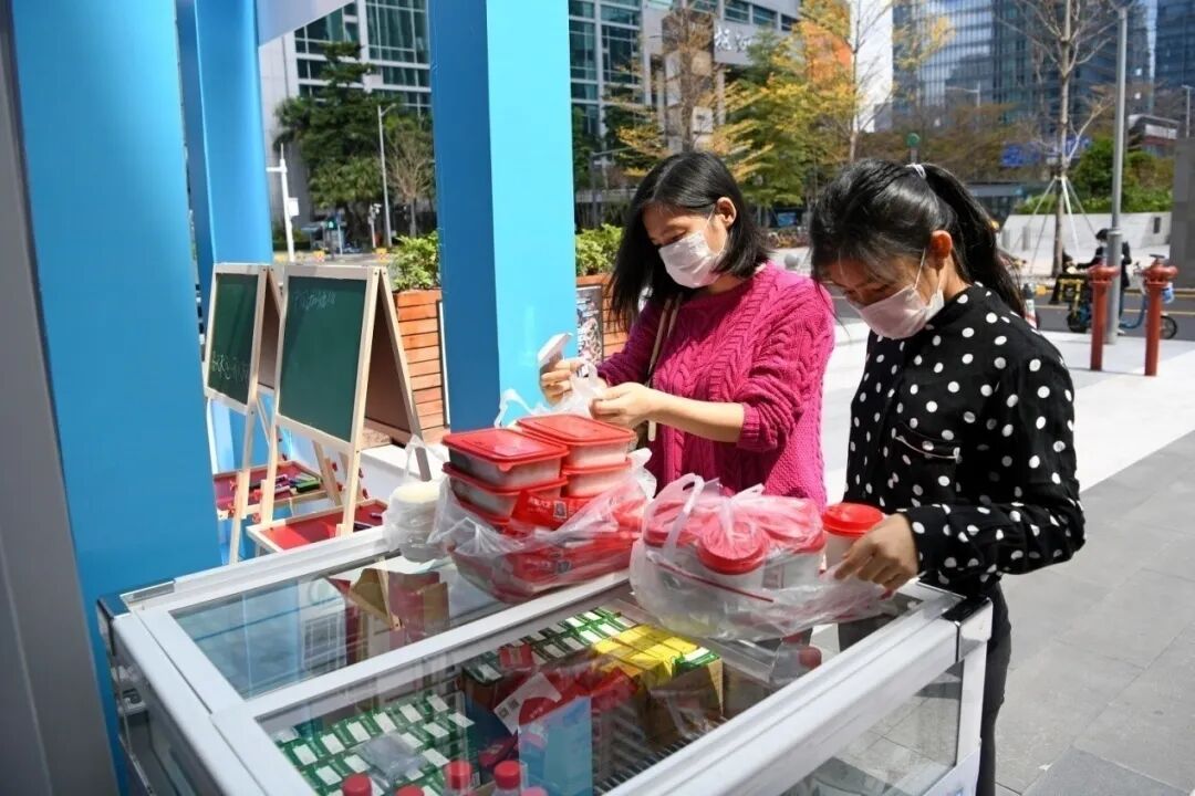 2月29日,一位市民采购饮品后委托超市工作人员送到“无人冰柜”。新华社记者 梁旭 摄
