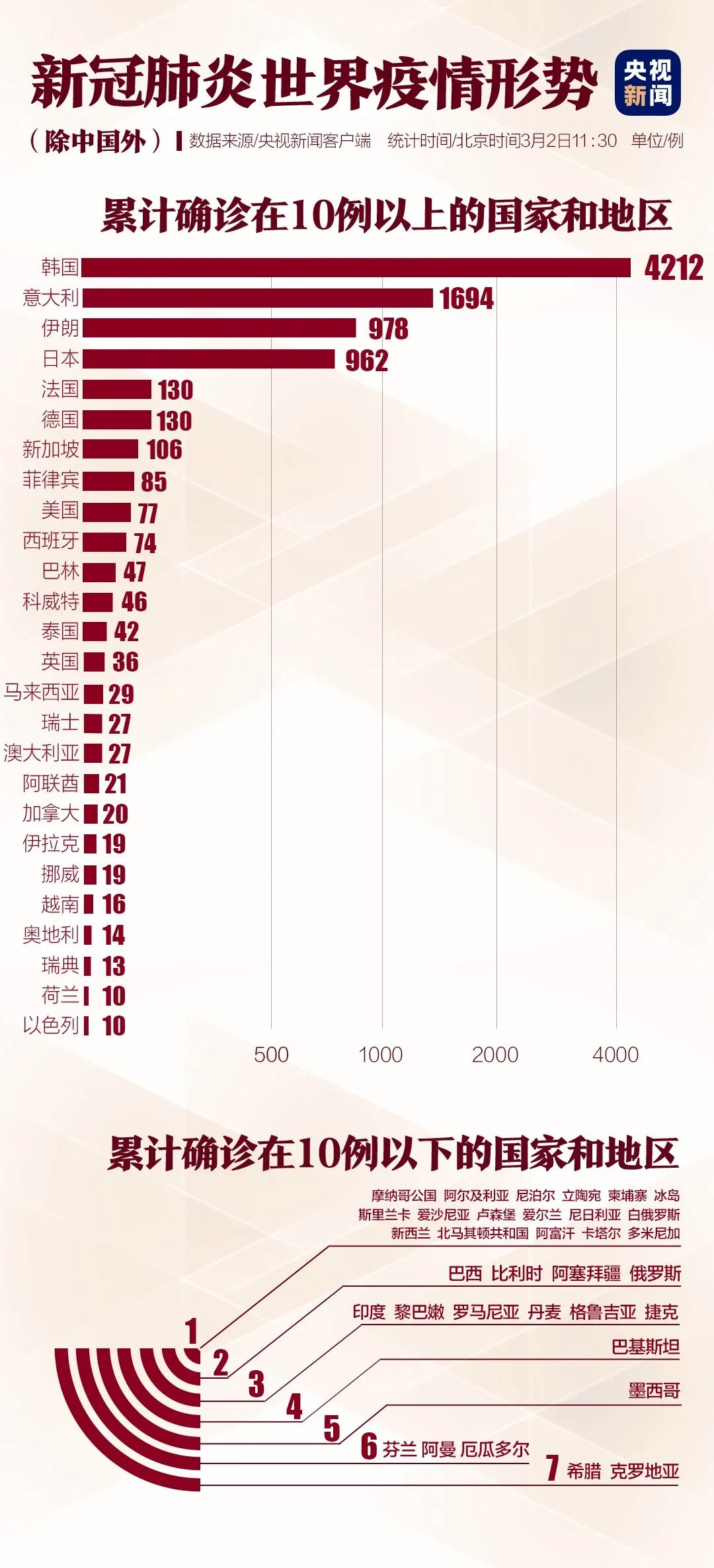 韩国中央防疫对策本部2日通报,截至1日24时,韩国累计确诊病例4212例,死亡22例。