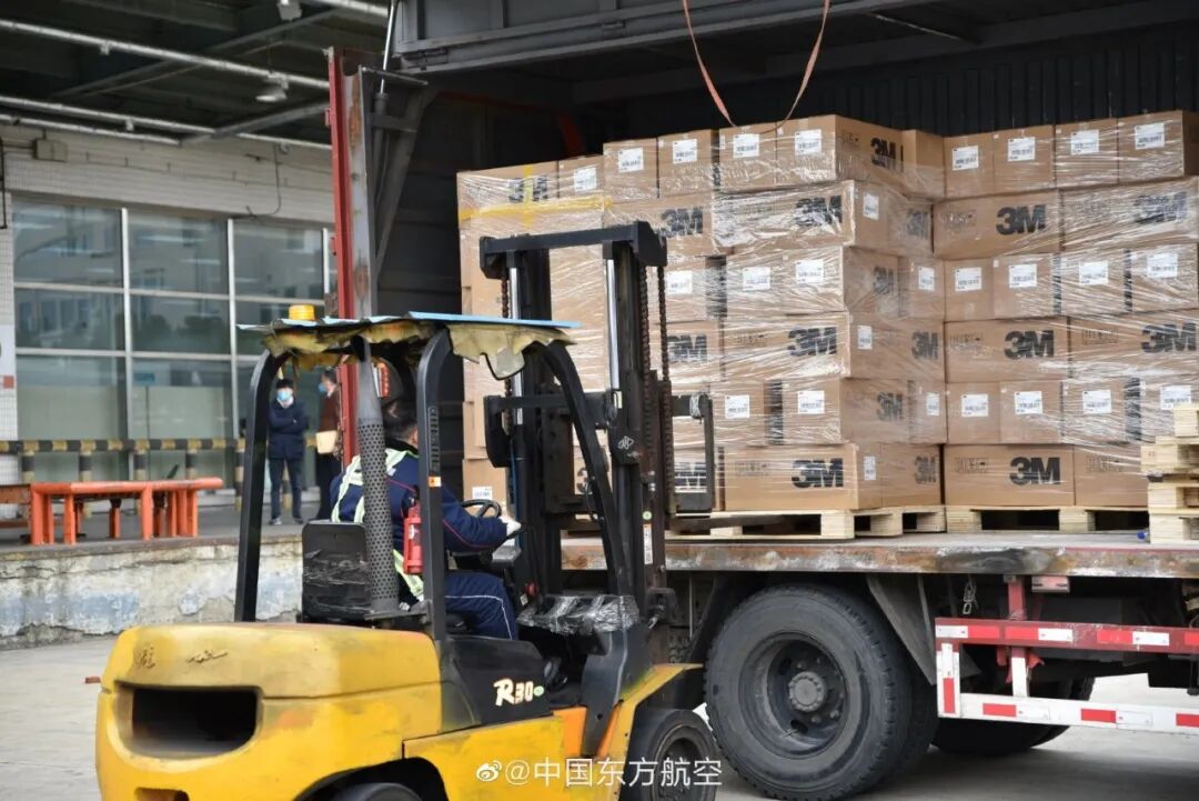 据中国东方航空官方微博消息,2日上午,航班已从上海浦东机场起飞,承载着上海市政府捐赠给韩国大邱市和庆尚北道地区的50万只口罩飞向韩国。
