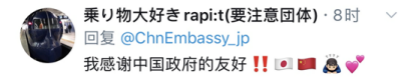 众多日本网友还在中国驻日本大使馆的推文下留言,甚至有人用中文发表了感谢的评论。