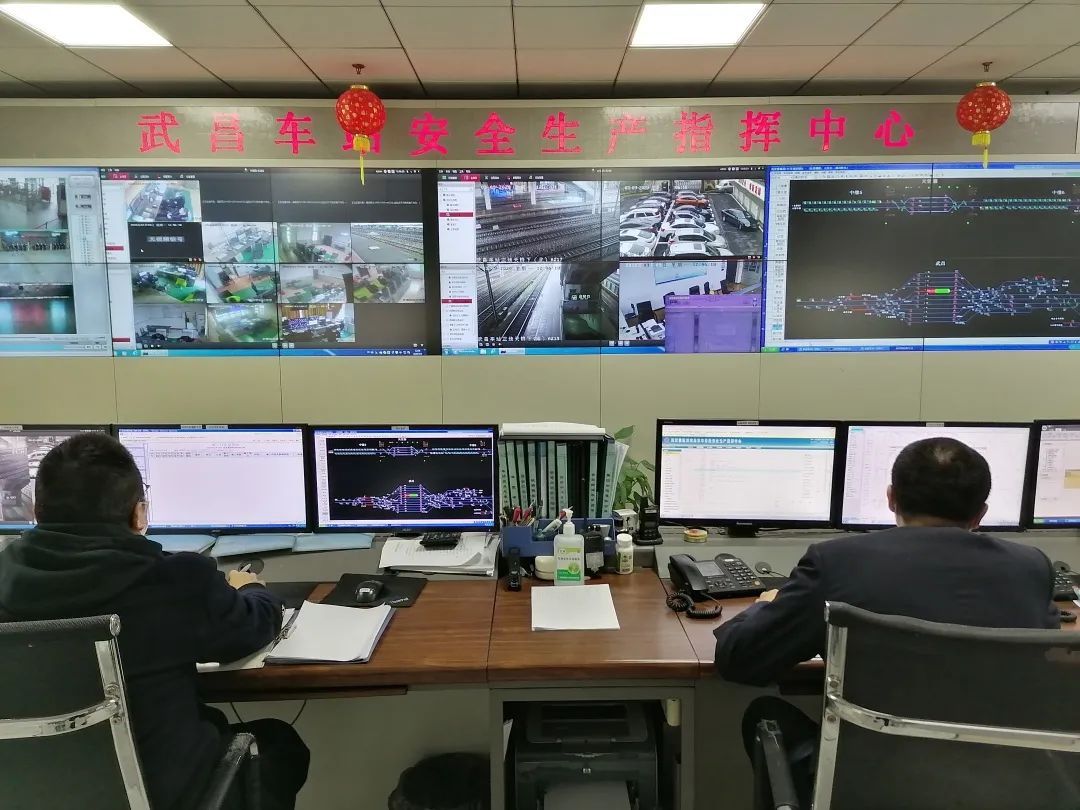 在武昌站安全生产指挥中心,车站调度员正在认真收发调度命令。