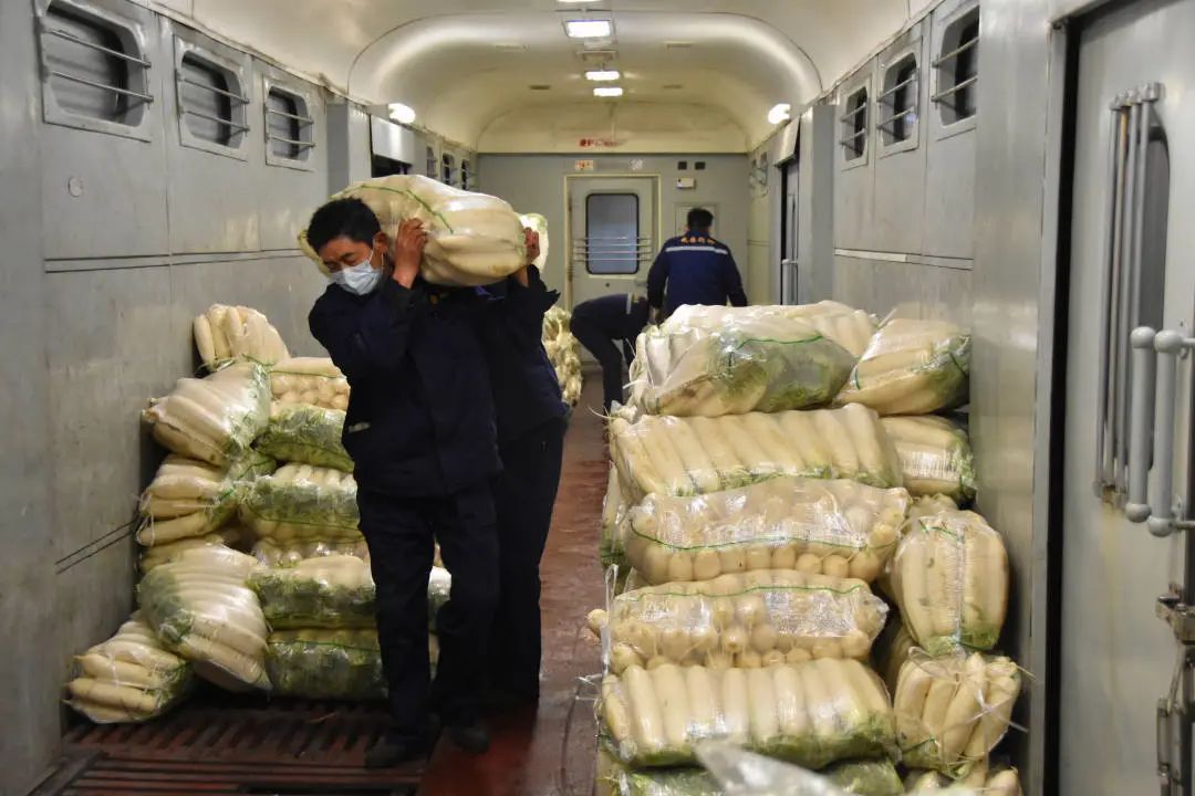为了确保武汉物资供应,这两天,来自辽宁、内蒙古、山东的铁路部门将各地捐赠的白菜、马铃薯等新鲜蔬菜通过铁路列车运往武汉。