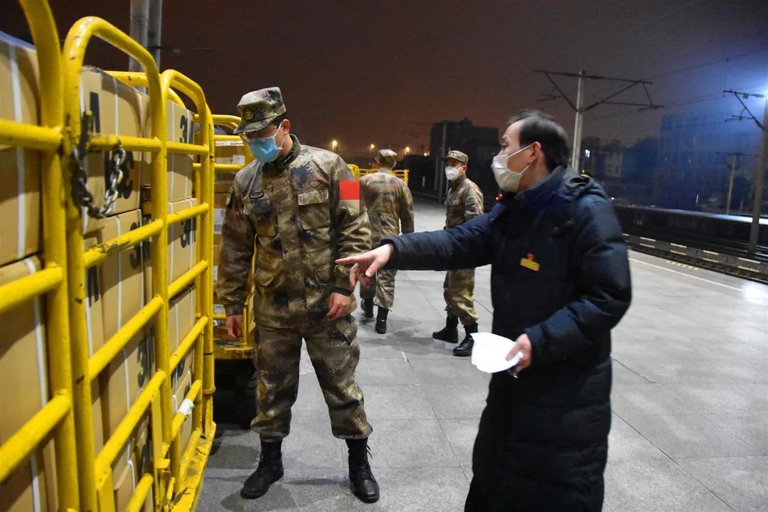 2月24日晚23时25分,由北京西开往昆明方向的Z161次列车停靠武昌站1站台,卸下了497箱、近8吨用于满足武汉火神山医院、雷神山医院、中国人民解放军中部战区总医院和湖北省妇幼保健院(光谷院区)、武汉市泰康同济医院需要的防控物资。