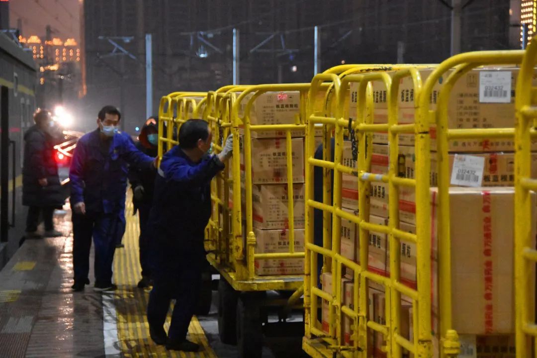 “1!2!3!”装卸工的号子声,在深夜空旷的站台上回响。这是疫情期间武昌站司空见惯的场景。
