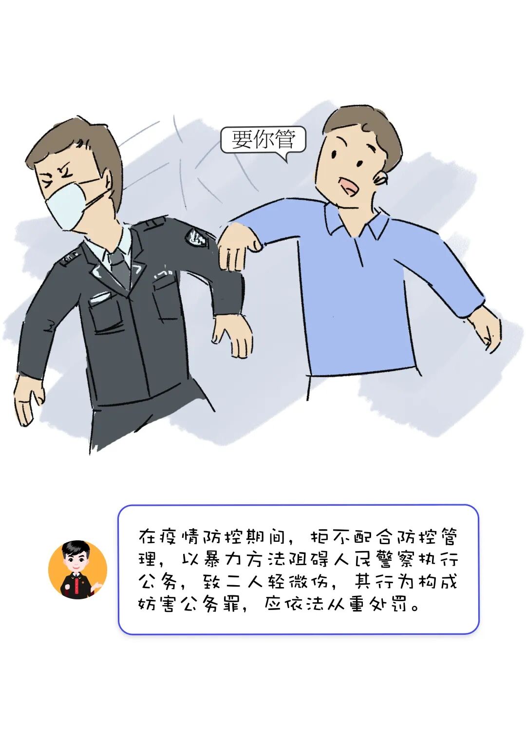 以暴力、威胁方法阻碍国家机关工作人员(含在依照法律、法规规定行使国家有关疫情防控行政管理职权的组织中从事公务的人员,在受国家机关委托代表国家机关行使疫情防控职权的组织中从事公务的人员,虽未列入国家机关人员编制但在国家机关中从事疫情防控公务的人员)依法履行为防控疫情而采取的防疫、检疫、强制隔离、隔离治疗等措施的,依照刑法第二百七十七条第一款、第三款的规定,以妨害公务罪定罪处罚。暴力袭击正在依法执行职务的人民警察的,以妨害公务罪定罪,从重处罚。