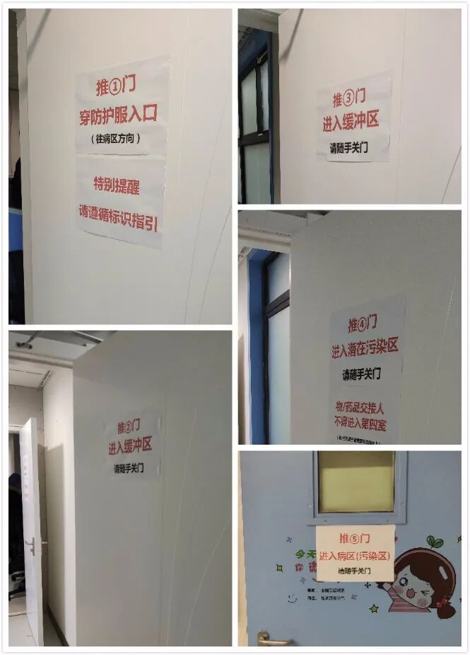 感控组制定了病房感控管理的各项规范,同时根据诊疗操作的危险程度,进行分层、分级管理。他们在各区域设置了标识和提示,确保每一个队员都掌握防护流程;帮助队员反复训练标准操作,把易错的部分做成图示,通知给每个医疗队员用于纠错和更正。
