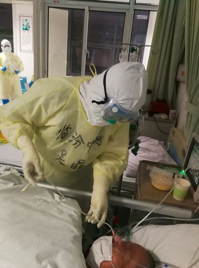 一天晚上9点多,一名重症患者突然胸憋,血氧饱和度降低,呼吸增快。我立即与同事们开始边检查急救装置、边安抚患者。