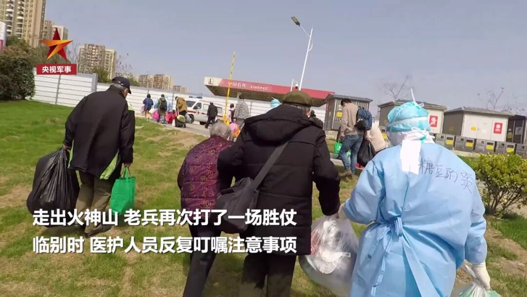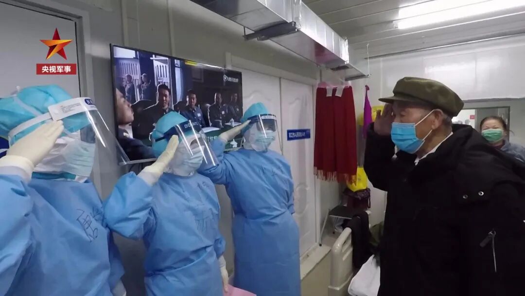 医护人员说:“您是抗美援朝打败侵略者的英雄;今天,您又战胜了新型冠状病毒,再次成为我们心目中的英雄。今天,火神山正式批准您出院。我们向您致以崇高的敬意,敬礼!”