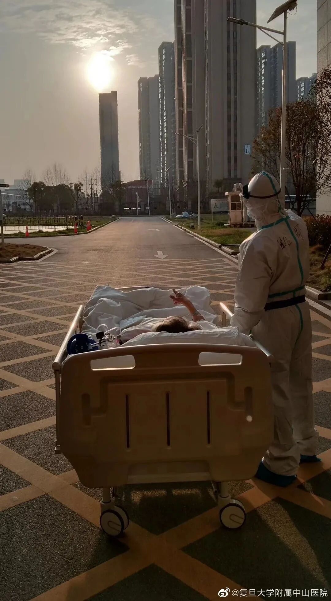 “今早我去查房,看到他很精神,我也让他自己多动一动。”陪伴老爷爷一起看日落的复旦大学附属中山医院支援湖北医疗队队员刘凯跟记者表示,老先生目前情况良好,出院在望。
