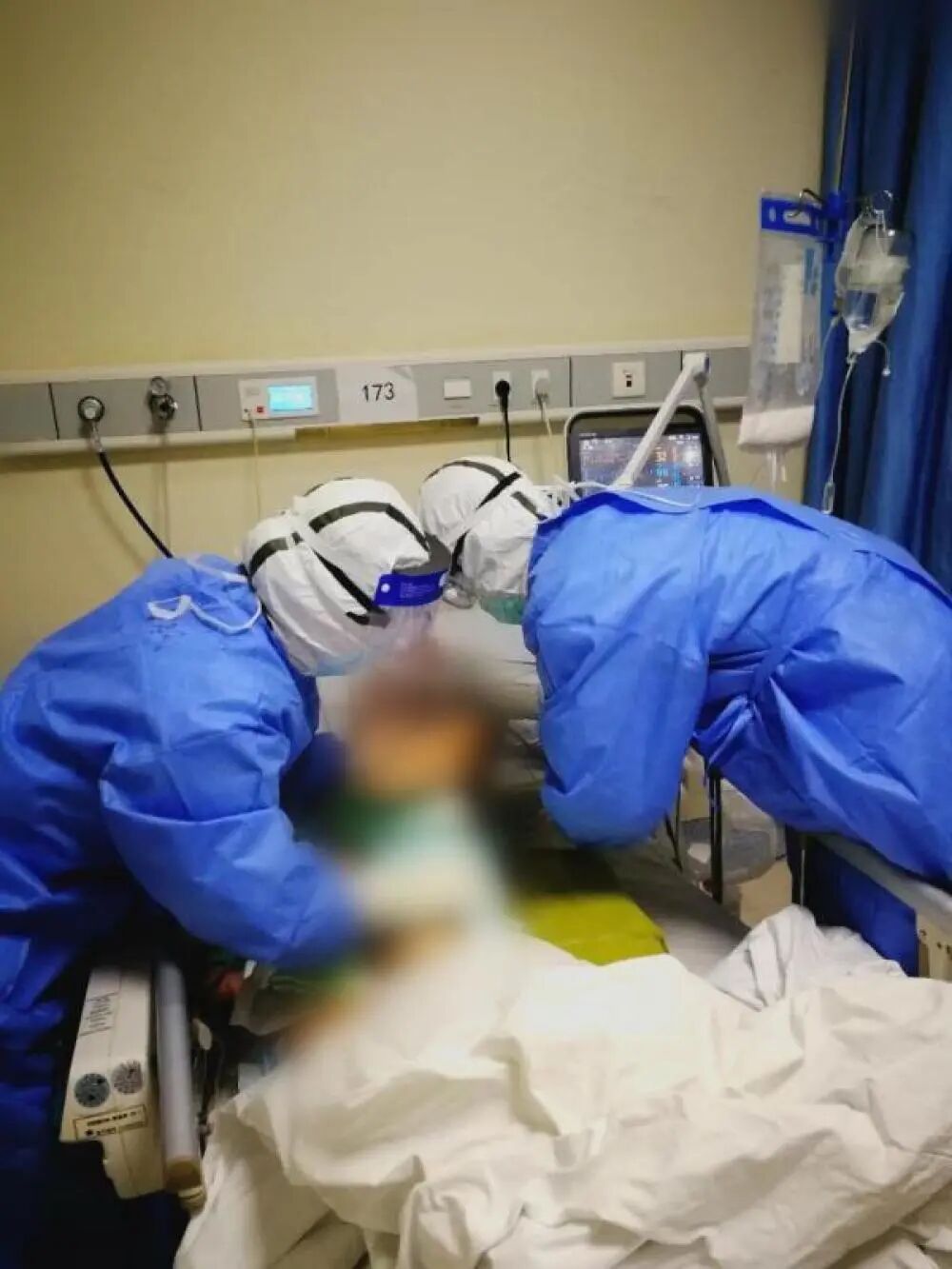 没有进入病房之前,我的脑子里想的很多。吸痰怎么办?气道飞沫喷溅怎么办?怎么预防压疮?静脉通路好不好建立?护目镜、面屏再加上双层手套抽血有点难度,该怎么操作……一边胡思乱想着一边穿好防护服进入病房。