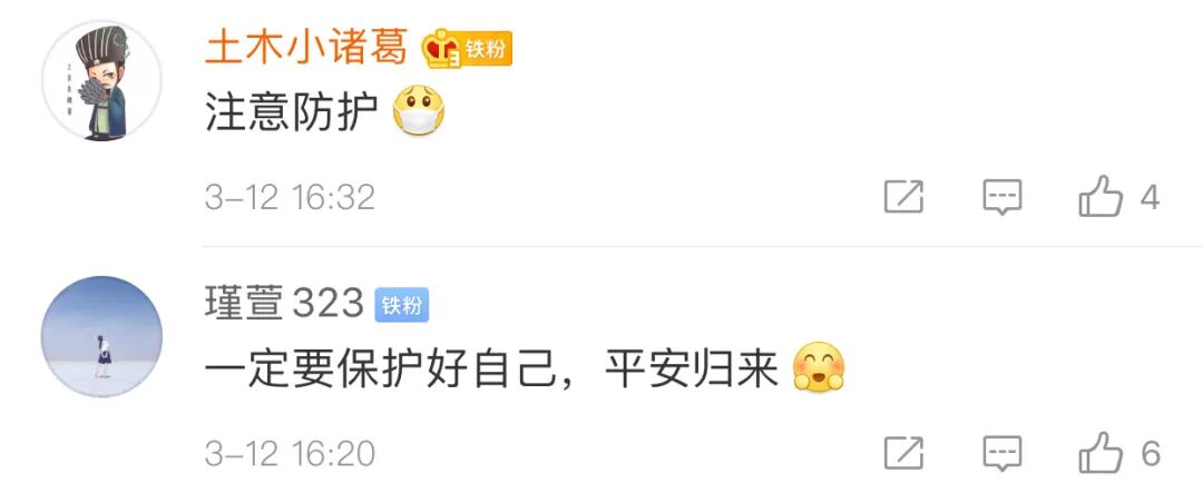 中国网友也纷纷表示,注意防护,一定要平安归来!