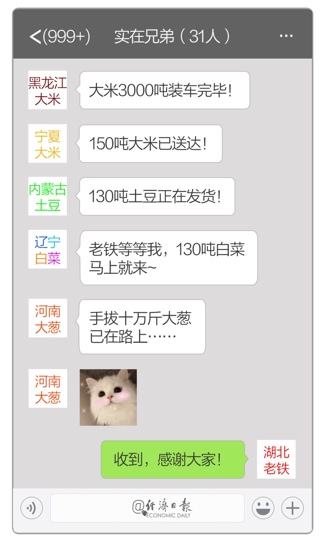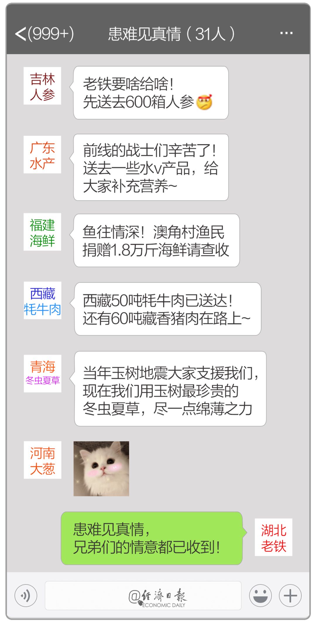“霸道总裁式”的捐助远远不止这些——2月16日,白切鸡、沙姜鸡汤、萝卜牛腩和广式包点等10余吨食材运送到武汉一线;3月2日,腐竹、鸭蛋、山茶油、高山红薯、红薯粉丝、鸭蛋等共计约62吨的农副产品,发往湖北……