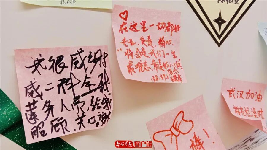医护人员在“许愿树”上留下美好心愿。 “武汉早日回到车水马龙的日子!” “为人民健康而来,无怨无悔!” “把脸迎向阳光,面前就不会有阴霾,坚定信心,你一定会更好的!” “希望我们都可以平安回家” “待疫情结束之后,欢迎你们来武汉旅游!” “樱花烂漫时,再来相会!” “抛开口罩,自由呼吸!” “愿你们身体健康,早日与家人团聚!” “你们不是亲人胜似亲人,爱你们哟!” “在这里一切都好,你们的专业、负责和精心将是我们一生最难忘、最美好的记忆!” 另外还有一些画着战胜病毒,加油胜利,以及爱心等的卡通小画也间插其中。