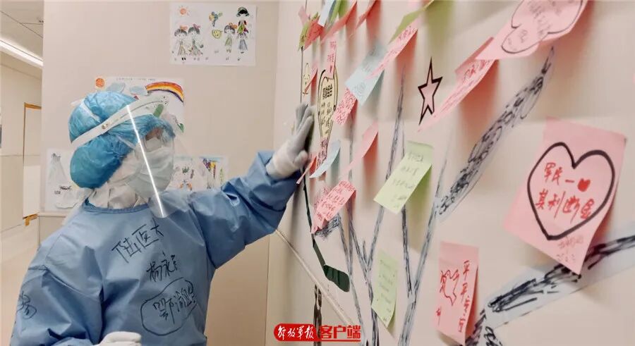 “许愿树”每一片“树叶”上都有医务人员和患者的美好心愿。 感染二科主任徐智教授介绍,他们在收治过程中发现患者普遍存在较大心理压力。为给患者减压,同时也为医护人员与患者更好沟通,增强共同战胜疾病的信心,他们专门在隔离病房的墙面上勾画了一棵“许愿树”,请患者和医务人员把自己的心愿写在一张张各色便条上,然后再粘贴到墙上。短短几天时间,大家的一个个心愿“树叶”组成了一棵“心愿大树”。 “随着这棵隔离病房‘许愿树’开枝散叶,患者心里也树立起了战胜病魔的信心,患者间也营造了乐观向上的氛围。大家主动听从医嘱,积极配合治疗,更有助于战胜病魔。”罗春梅护士长说。