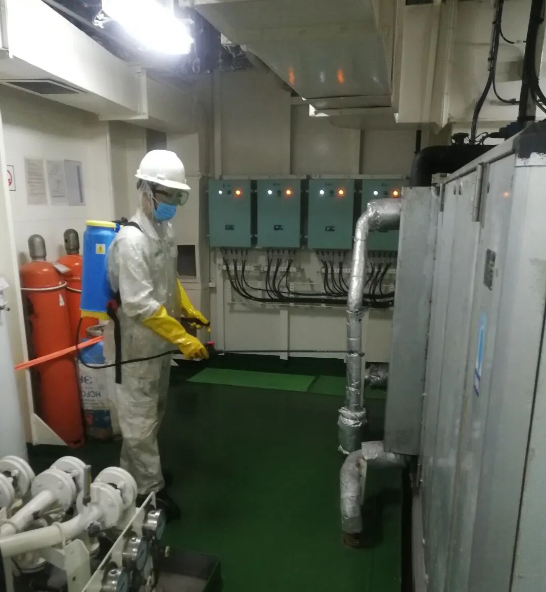 作为三管轮,这项工作正是刘宣虎的职责。为了全船船员的身体健康,他竭尽全力把空调管理工作落实落细。首先,每天对空调系统进行一次全面检查,发现问题,第一时间进行处理,并加强维修保养,确保整个系统运行良好。其次,密切关注船舶内外部温度变化,适时对生活区温度进行动态调节,并增加通风频率,努力让船员们的生活环境始终维持在舒适宜人的状态,避免忽冷忽热造成感冒。同时,每三天对空调风箱内外滤网换新,每天早晚两次对船舶空调系统风箱及其周围进行消毒处理。