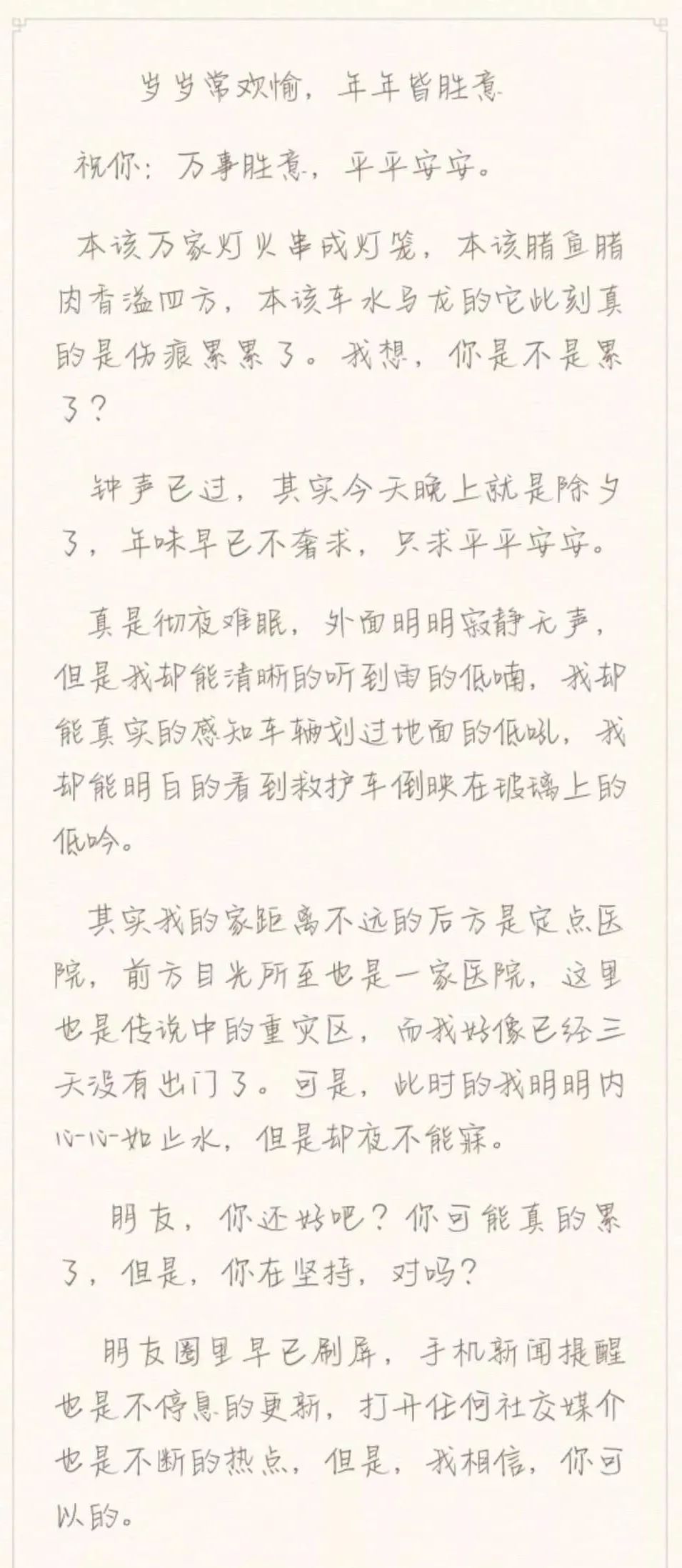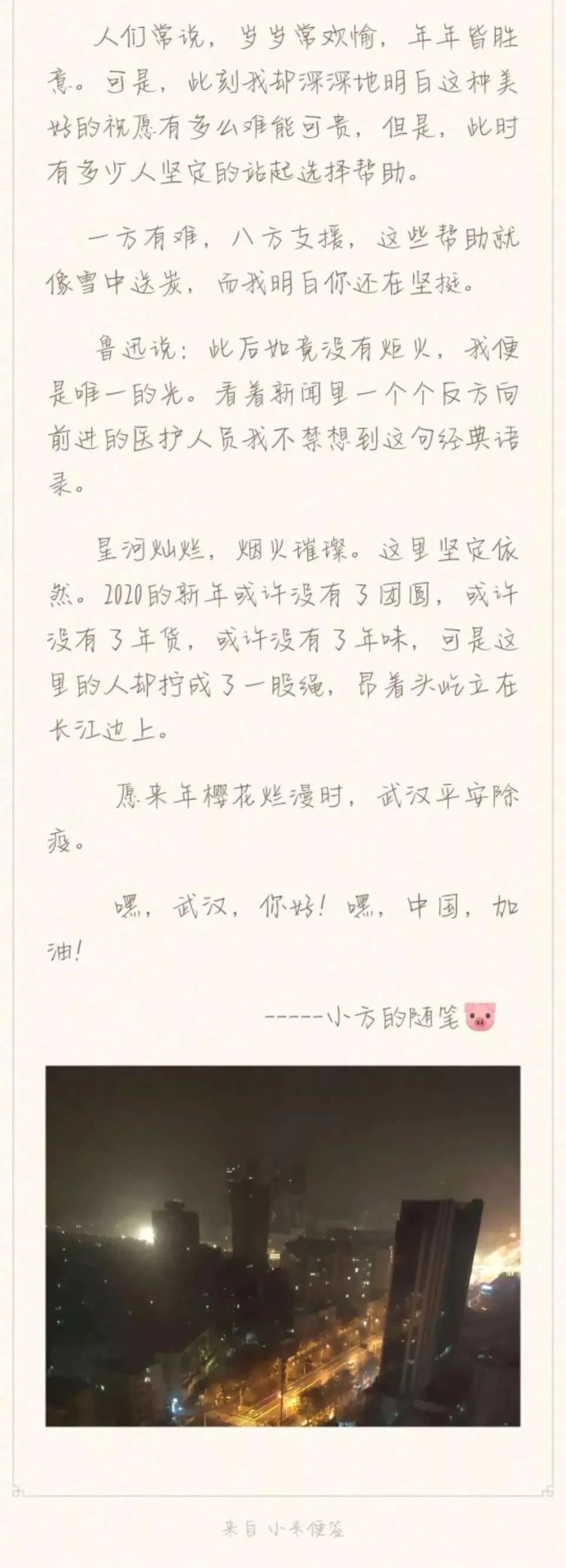 她是16岁的武汉女孩陈琪方,在抗击疫情中,她的母亲和外公都奋战在抗疫一线,所以她写了一封给患者的公开信。她想告诉所有患者:“ 哥们,挺住,我把我的外公还有妈妈都借给你了!”