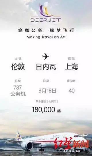 记者注意到,近日有张海报传遍朋友圈:一架从伦敦经停日内瓦飞上海的航班将于3月18日执飞,航班共有40个座位,每个座位售价18万元起。