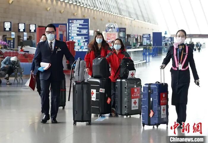 中国抗疫专家组一行9人从上海飞往罗马。东航供图
