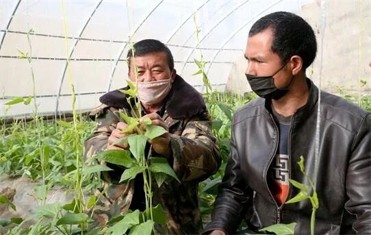3月4日,墨玉县加汗巴格乡巴格其村村民贫困户阿卜杜热合曼·艾散正在大棚里学习种植豇豆。许晓龙摄