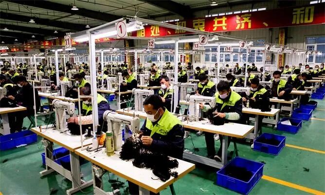 洛浦县新疆玛卡娅假发制造有限公司的工人们正在紧张生产中。许晓龙摄