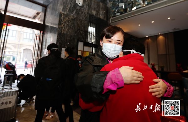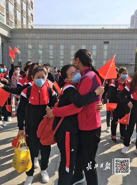 江汉区驻地保障人员与“海南姐妹”相拥告别通讯员供图