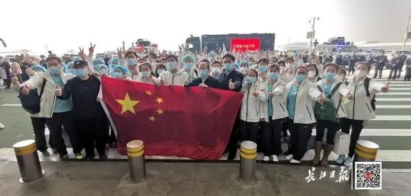 在观展的观众中,有这样一群人,他们或是曾经奋战在抗疫一线的援鄂医疗队员,或是解除隔离的留学生,又或是展品提供者、亲历疫情的市民。空军军医大学口腔医院医疗队刘青玲携三位队友,从西安来到展览现场,看到援鄂医疗队队员们告别家人奔赴一线,忍不住落下了眼泪。