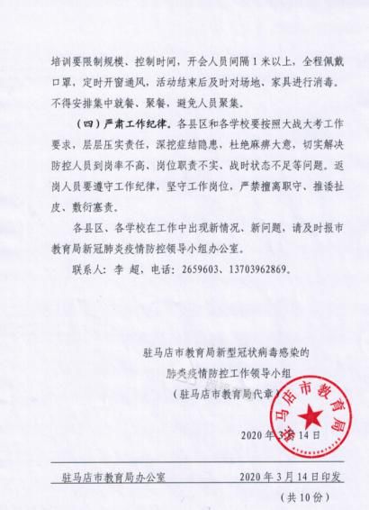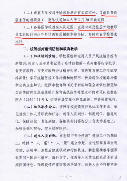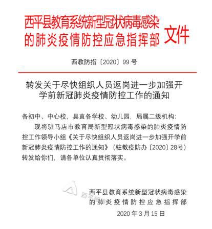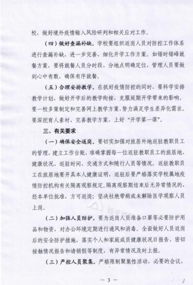 3、三门峡市教体局:3月12日三门峡市教育局新冠肺炎疫情防控领导小组下发通知要求:市直各学校中层以上干部和疫情防控重要岗位人员,务必于3月16日返回工作岗位;其他人员根据学校工作安排,做好随时返岗准备。