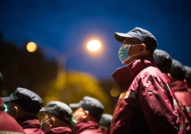3月17日,陕西国家紧急医学救援队队员在武汉列队准备返程。新华社记者 肖艺九 摄