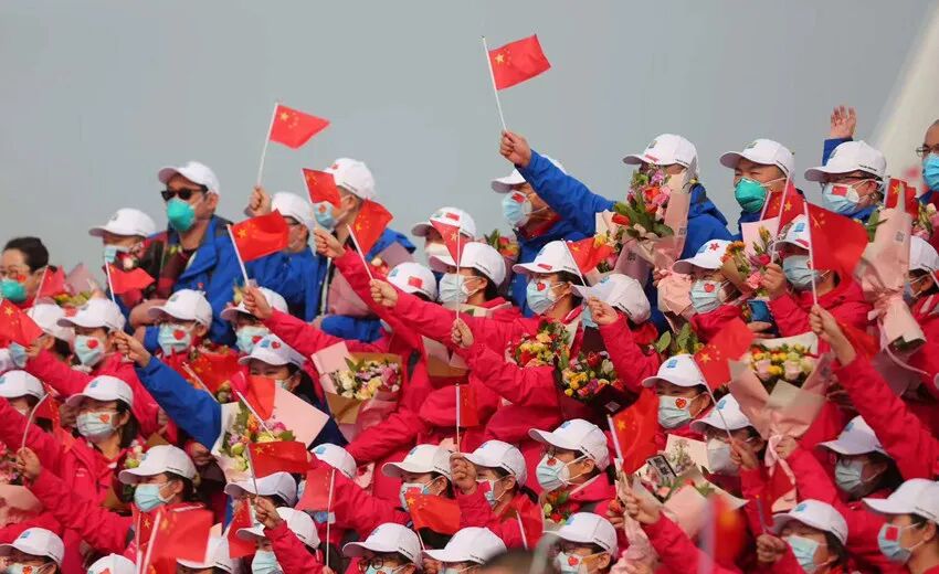 其中,511名医疗队员进驻雷神山医院,是全国地级市派出人数最多的一支医疗队,负责雷神山医院8个病区365张床位的新冠肺炎患者救治工作,历时55天共救治患者509人,已有420名患者治愈出院。另有18名援鄂重症医疗队队员同机返回。