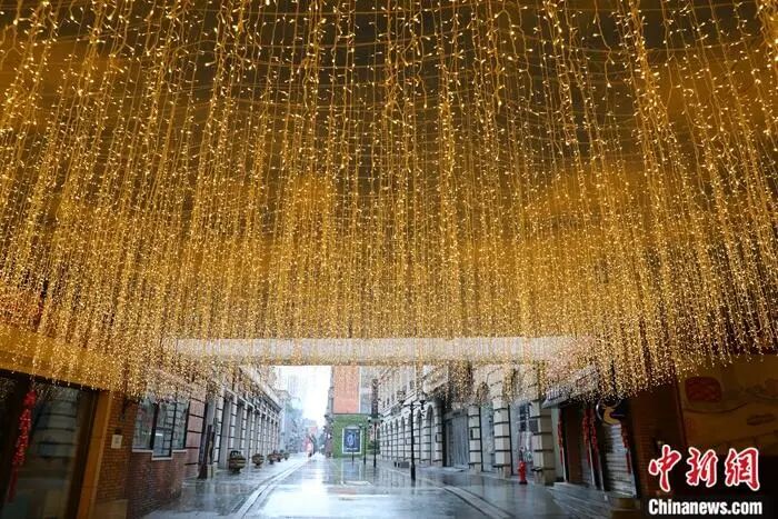 1月25日,大年初一,武汉还悬挂着精美的迎新春饰品,但街头已空无一人。中新社记者 张畅 摄