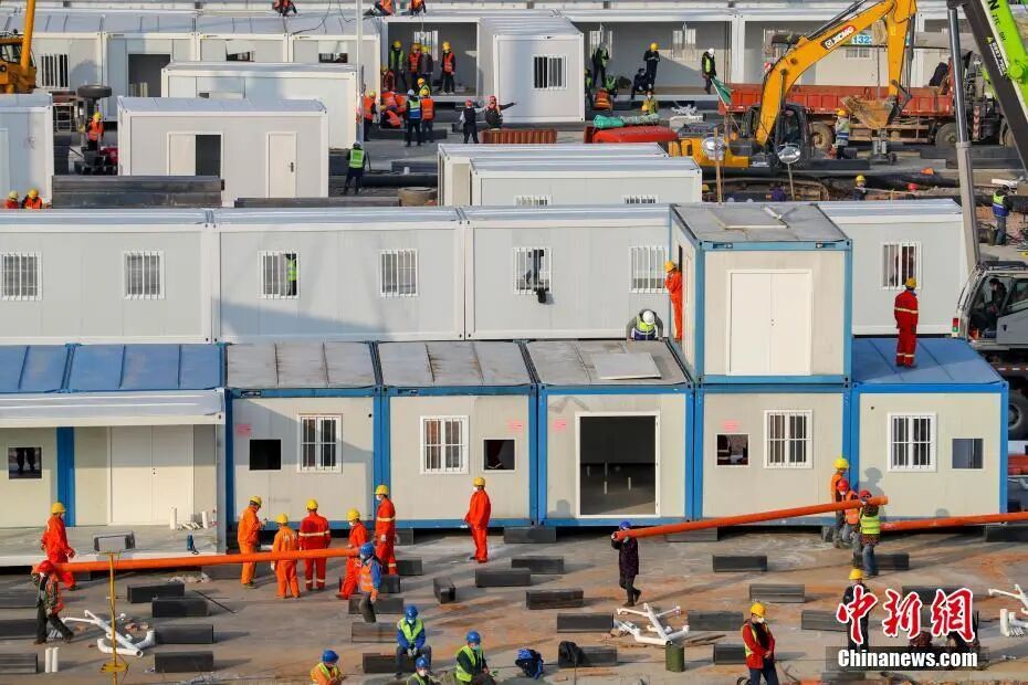 图为火神山医院施工现场。中新社记者 张畅 摄