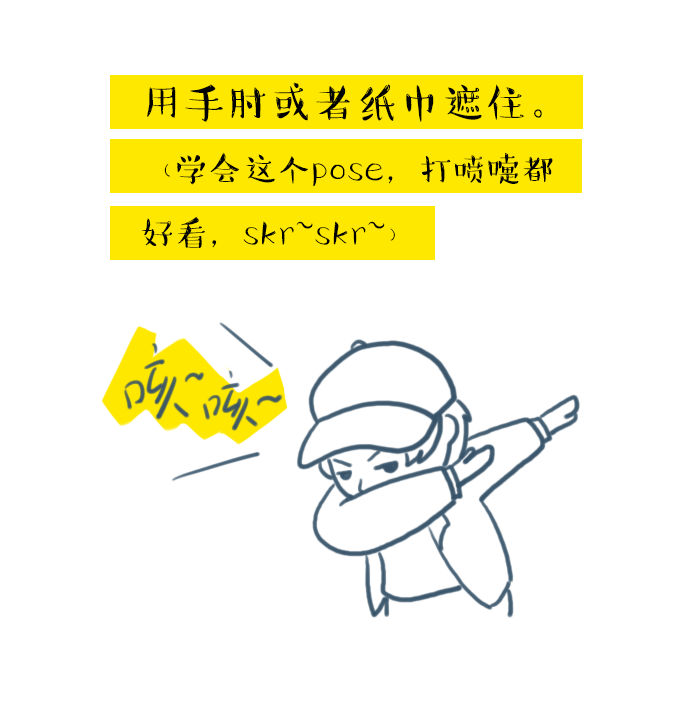 3、 突然想打喷嚏或者咳嗽的时候,正确姿势是什么? A 用手肘或者纸巾遮住 B 用手去捂住口鼻