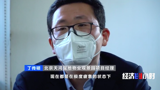 丁传硕是北京天鸿宝地物业观景园小区项目经理。采访当天,是他自疫情发生以来连续工作的第81天。一天要打上百个电话,小区里各个楼上上下下跑十几趟,这就是丁传硕的一天。从大年初一开始,他们对北京观景园小区的1470户居民采取临时封闭管理措施。