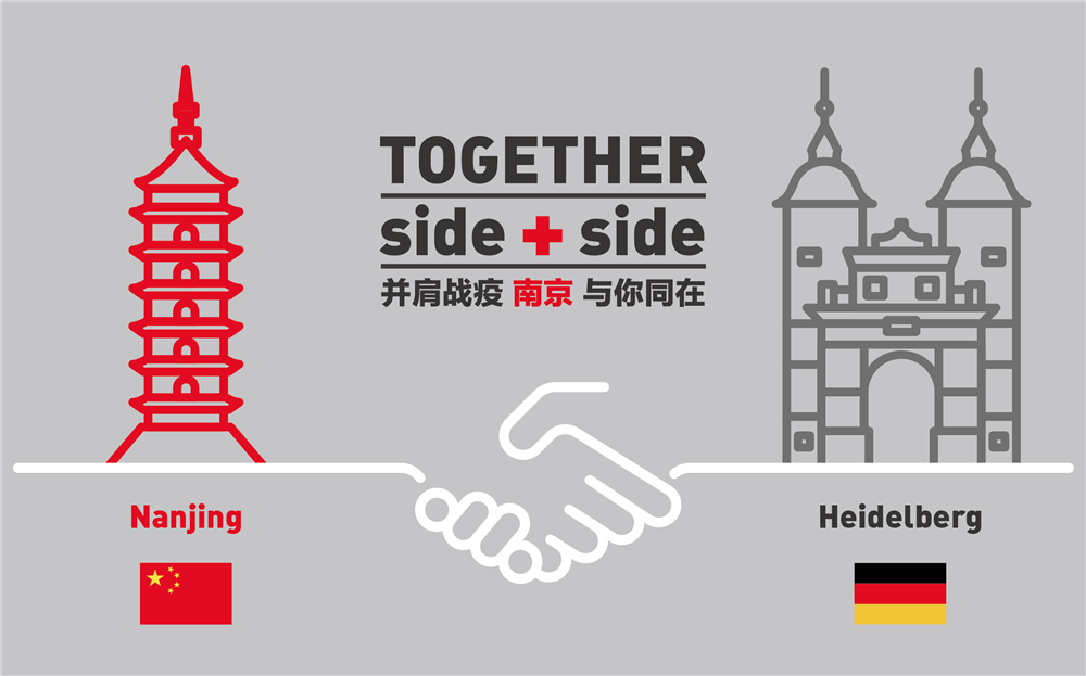 4月17日,一批抗“疫”物资从南京飞抵德国柏林,然后被送往海德堡。捐赠物资清单上,受赠方一栏填写着“托马斯 拉贝”“海德堡大学医学院”等。中德两国国旗上方,南京大报恩寺琉璃塔和海德堡古桥巍然耸立,两只大手紧紧相握。
